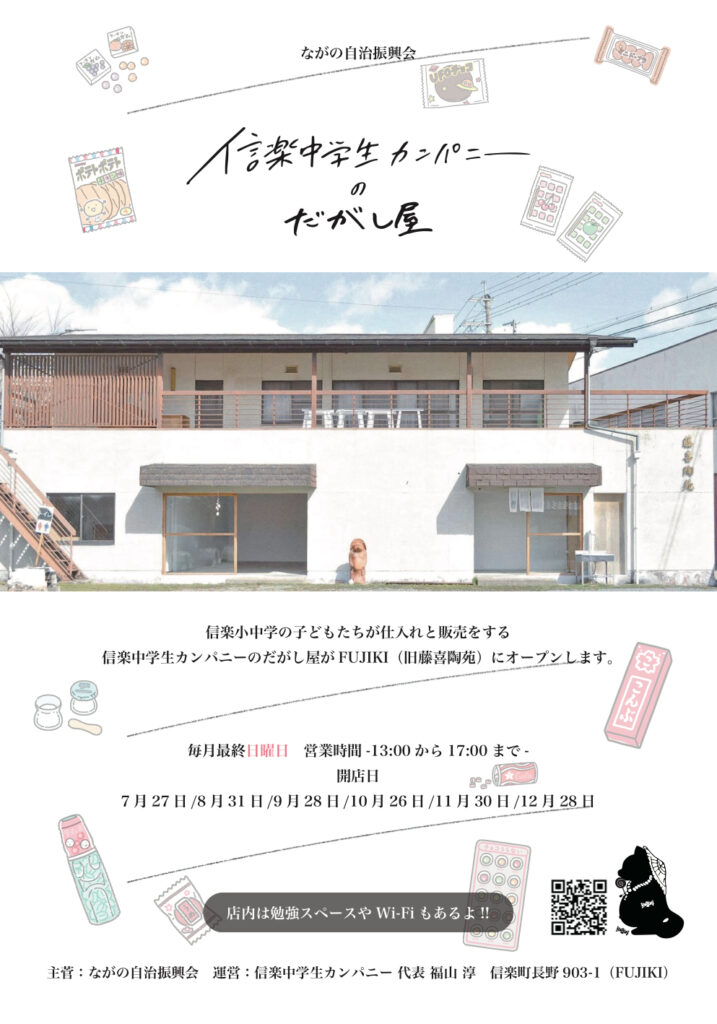 ながの自治振興会主管の元、信楽中学生カンパニーのだがし屋がオープンします。