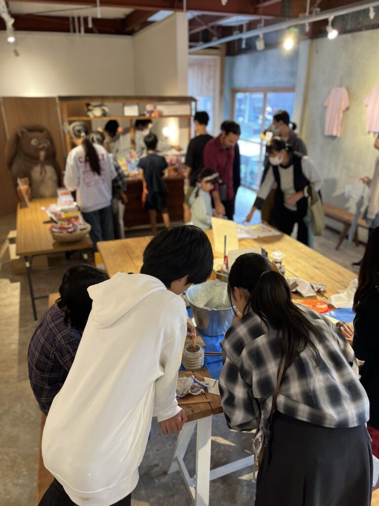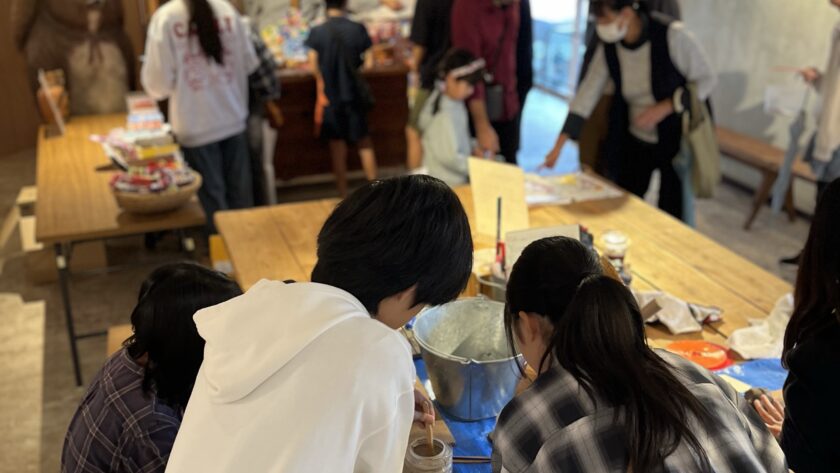中学生たちは店番と併用して箸置きの製作。