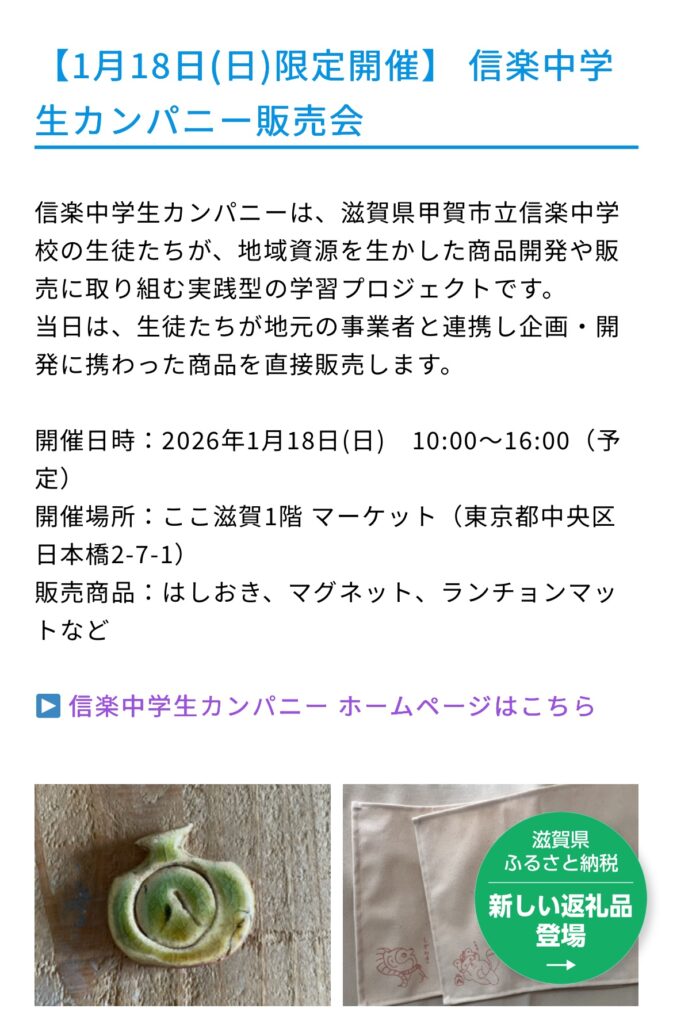 東京日本橋「ここ滋賀」販売会のお知らせ